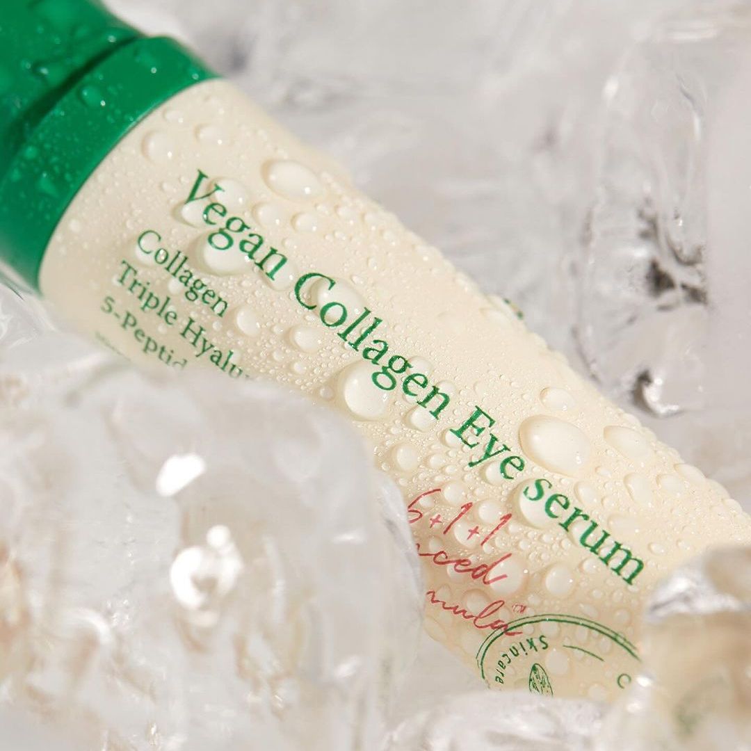 Serum para el contorno de ojos de colágeno vegano, que ayuda a combatir las arrugas, la hinchazón y las ojeras.