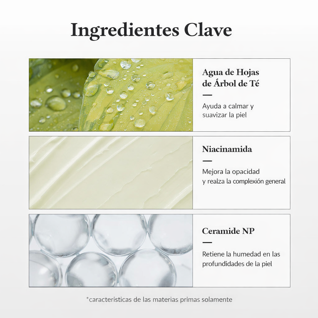 Contiene una potente mezcla de niacinamida, pantenol y extracto de tallo de Opuntia Ficus-Indica. La niacinamida mejora la barrera de humedad de la piel, regula la producción de grasa, atenúa las manchas oscuras y promueve un tono de piel uniforme. El pantenol proporciona una hidratación eficaz, ayuda a curar irritaciones menores y alivia el enrojecimiento. El extracto de tallo de Opuntia Ficus-Indica ofrece una hidratación excepcional y es ideal para pieles secas o sensibles.